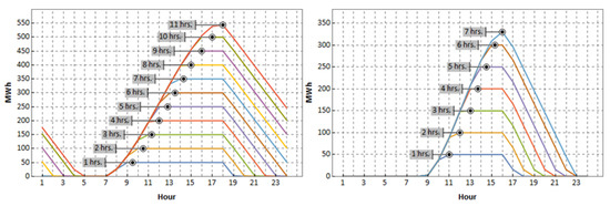 Kolb [43] estimates a thermal energy loss of 1 MWth for a TES system of 5000 MWh; this represents an hourly loss of 0.02%. For this work, the energy loss at time “i” was assumed to be 1% of the stored energy at time “i − 1”.