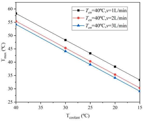 Variation of Tmax at a 4 C discharge rate with different coolant temperatures (from Li et al. [54], with permission from Elsevier).