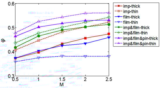To quantify the relative contributions of the constituent parts of the double-wall cooling, Li et al. [100] performed the measurement for different cooling configurations, including pure impingement cooling, pure effusion cooling, double-wall cooling without pins, and double-wall cooling with pins (Figure 17). The results showed that for the thin effusion plate, the overall impingement cooling efficiency was 17–39% higher than the overall effusion cooling efficiency (Figure 18). Notice that the overall double-wall cooling efficiency was lower than the sum of the separate efficiency of impingement cooling and effusion cooling. This indicated that there was an interaction between them that reduced the net cooling performance [101]. Although a good knowledge of the effect of flow bled through effusion holes on the impingement heat transfer [102,103], and the effect of internal impingement jets on the adiabatic effusion cooling efficiency [104,105] has been obtained, the coupling effect of impingement cooling and effusion cooling on the double-wall cooling performance is not yet well understood.