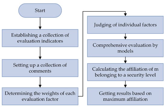 Flow chart of fuzzy comprehensive evaluation method of charging equipment safety.