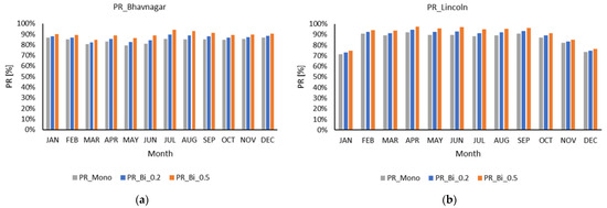 Monthly performance ratio of the (a) Lincoln Solar Farm and (b) Bhavnagar Solar Farm.