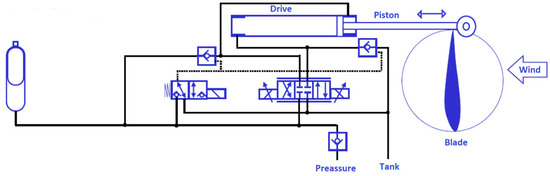There are many factors why it is advisable to use a hydraulic swivel system. It is suitable for all climatic conditions. The connection to the system is flexible. The emergency stop works even without a power supply thanks to a coil spring incorporated in the hydraulic system, which stores the energy needed to turn the blades to the zero position in the event of a fault. Status monitoring is relatively simple [13,24]. Its hydraulic system is structurally uncomplicated, which makes maintenance low. The hydraulic system is generally cheaper throughout its service life (investment costs, maintenance, and service costs) [26].