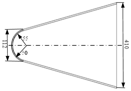 Figure 11 shows the geometry of a hypersonic aircraft, which is a completely axisymmetric blunt body composed of a spherical dome and a conical shell, and the thickness of the shell is 5 mm. Although the blunt body shape increases the resistance, it reduces aerodynamic heating.
