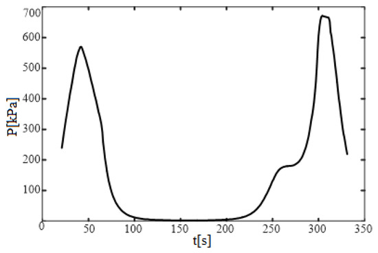 Because of the rapid decrease in flight velocity, the effect of the pressure of the aircraft after the shock wave is greater than that caused by the altitude change of the aircraft. The atmospheric pressure parameters at the altitude of 9.3 km at 310 s show little difference with those at the altitude near the ground. It can be seen from Figure 14 that the flight velocity at 330 s roughly decreases by half compared with that at 310 s. Therefore, the maximum wall pressure during this period decreases continuously, and the maximum wall pressure at 330 s is only 250 kPa.