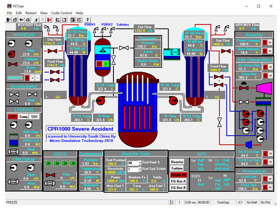 - Saha, A.; Fyza, N.; Hossain, A.; Sarkar, M.R. Simulation of tube rupture in steam generator and transient analysis of VVER-1200 using PCTRAN. Energy Procedia 2019, 160, 162–169. [Google Scholar] [CrossRef]