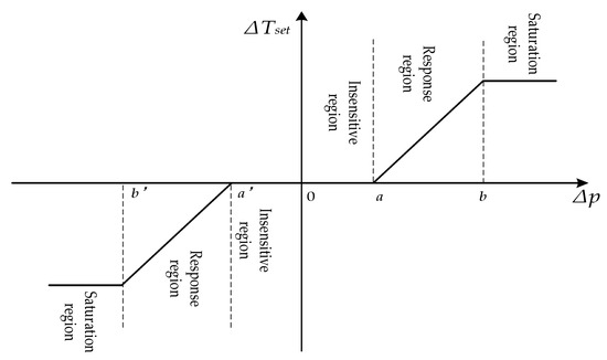 where and respectively represent the actual regulation amount and the maximum regulation amount compared to original comfort temperature without incentives, represents the incentive price, and respectively represent threshold values of the insensitive region and the saturation region of sacrificed temperature, and is the slope of the linear response region.