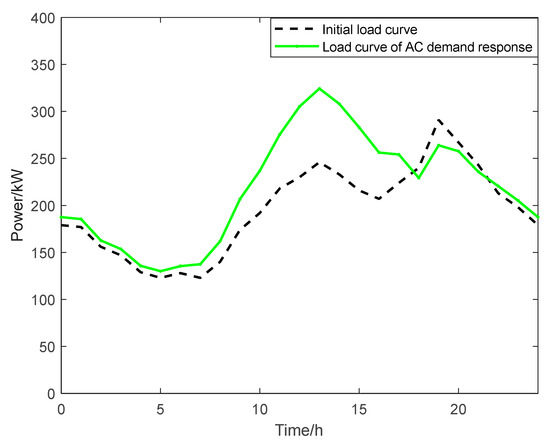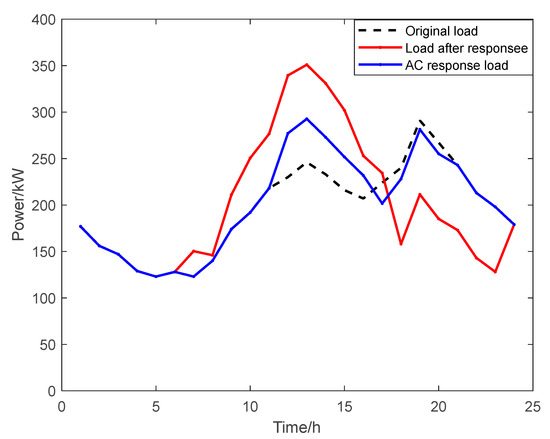 Residents’ AC DR can be divided into electricity charge sensitive DR (CSDR) and incentive-based DR (IBDR) [18,19,20]. Compared with the uncertainty of CSDR’s load response, IBDR’s load response uncertainty is small, and the supply and demand balance of the power grid dispatching and regulating is rapid. However, it usually needs to sign a contract with the user and get the user’s behavior feedback through the monitoring equipment. User response behavior can be acquired through non-invasive devices, such as smart meters, or invasive sensors, controllers, and other equipment in residents’ houses. The way of direct monitoring and remote control through two-way communication networks has high cost, low efficiency, and feasibility. Therefore, this paper adopts ‘positive and negative’ incentive mode based on hourly electricity charge to stimulate the load response of users, that is, positive incentive means a reduction in original charge and vice versa. Therefore, the electricity charge is regulated in different time periods in the next day to get the full play of the flexible load potential to meet optimal operation objectives.