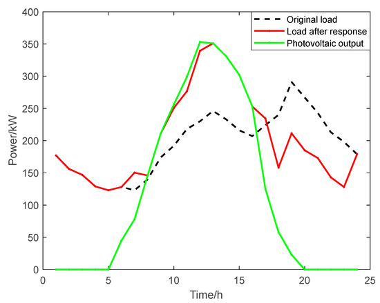 The load aggregator purchases electric energy from the grid and users with distributed PVs and sells it to all the users who need electricity in the area. Through the flexible load DR, the electricity consumption is optimized to earn the difference of the intermediate electricity fee. After calculation, the net income of the load aggregator is 607.45 yuan. It can be seen from the above regulation results that both the load aggregator and the user have maximized their economic benefits.