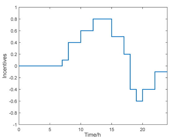 According to above optimal operation results, the optimal incentives for different hourly periods of a day are shown in Figure 18. The figure shows that it is a positive incentive from 7 a.m. to 5 p.m. in the daytime, encouraging residents to use more temperature-control loads to consume the remaining PV; It is a negative incentive for periods from 6 p.m. to 11 p.m., and residents are encouraged to transfer or save electricity during the evening peak period.
