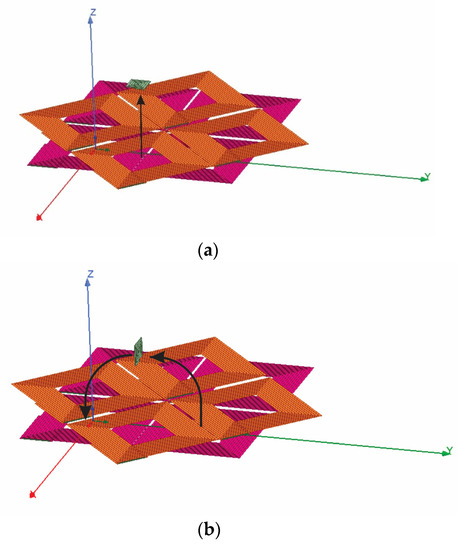 Electromagnetic field simulation using HFSS. The field distribution for (a) horizontal and (b) vertical RX module.