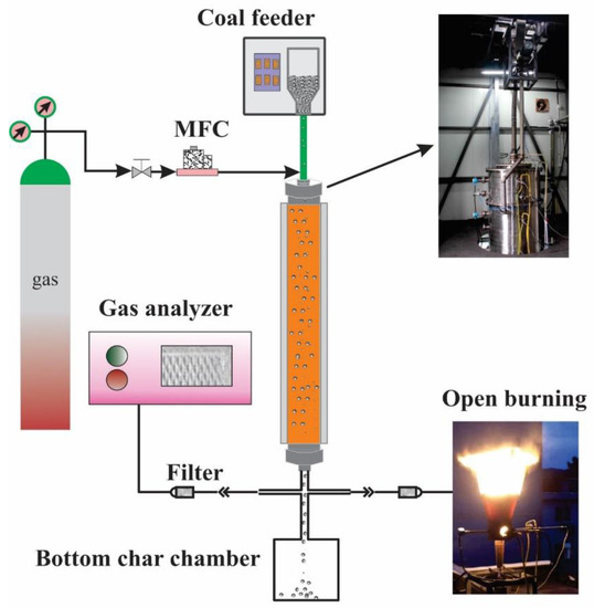 - Gonzalo-Tirado, C.; Jiménez, S.; Ballester, J. Gasification of a pulverized sub-bituminous coal in CO2 at atmospheric pressure in an entrained flow reactor. Combust. Flame 2012, 159, 385–395. [Google Scholar] [CrossRef]