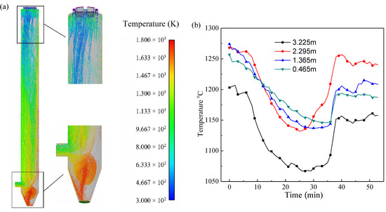 3.4. Effect on the Coal Gas Exit Temperature and Carbon Conversion