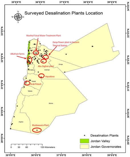 - Alsarayreh, A. Overview of Brackish Water Desalination in the Jordan Valley. In Proceedings of the Solutions to Water Challenges in MENA Region, Regional Workshop, Cairo, Egypt, 25–30 April 2017; Cuvillier Verlag: Göttingen, Germany, 2017. [Google Scholar]
