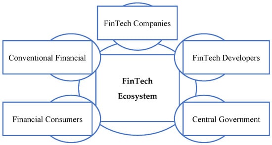 These five interconnected elements cohesively stimulate innovation and promote economic growth in the long run. Figure 1 shows the integrated ecosystem of the financial technologies industry based on the publications of the authors in [13,15]: