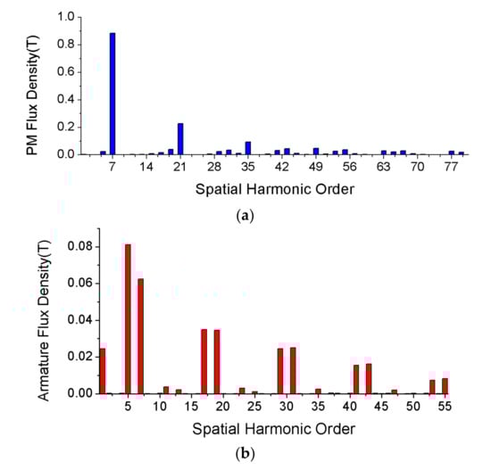 FFT of the PM motor: (a) PM flux density. (b) Armature flux density.