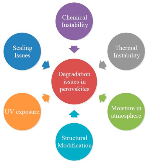 - Wang, D.; Wright, M.; Elumalai, N.K.; Uddin, A. Stability of perovskite solar cells. Sol. Energy Mater. Sol. Cells 2016, 147, 255–275. [Google Scholar] [CrossRef]