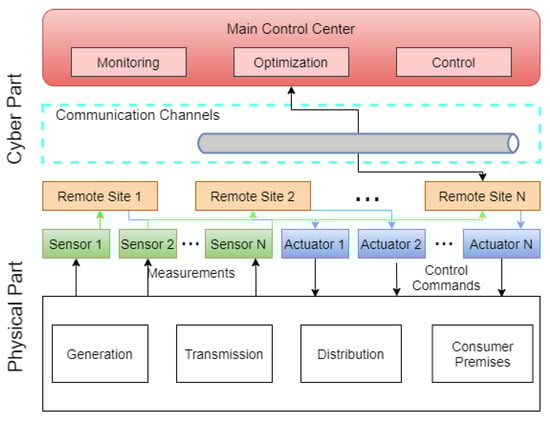 In related works, some broad cybersecurity threads and solutions are given in [9,10,11,12]. In [13], several denial-of-service (DoS) attack taxonomies for the Smart Grid (SG) are defined and some potential solutions are explored. In [14], applications of blockchain for cybersecurity solutions in the smart grid are explored. The various communications architectures, technologies, protocols, cyber threats, and countermeasures are explored in [15,16,17,18,19,20]. In [21], a taxonomy of false data injection attack (FDIA) detection algorithms is presented and evaluated. In [22,23], some cyber threats and countermeasures related to time synchronization of measurement devices are presented.