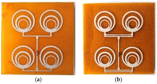 Fabricated RAAs. (a) Ant. A. Without π-stub. (b) Ant. B. With π-stub.