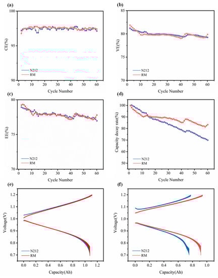 - Liu, Y.; Wang, H.; Xiang, Y.; Lu, S. The effect of Nafion membrane thickness on performance of all tungsten-cobalt heteropoly acid redox flow battery. J. Power Sources 2018, 392, 260–264. [Google Scholar] [CrossRef]