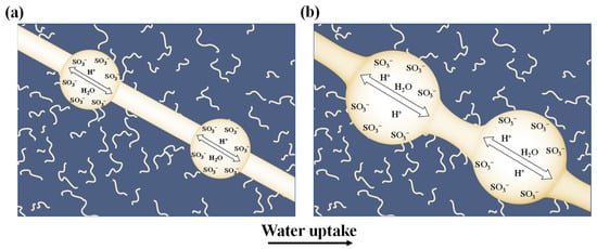 - Luan, Y.; Zhang, Y.; Zhang, H.; Lei, L.; Hong, L.; Liu, Y. Annealing effect of perfluorosulfonated ionomer membranes on proton conductivity and methanol permeability. J. Appl. Polym. Sci. 2010, 107, 396–402. [Google Scholar] [CrossRef]