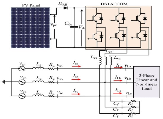 - Afsher, P.A.; Kumar, M.V.M.; Mukundan, C.M.N.; Shyju, K. A PV-DSTATCOM With Adaptive DC-Link Voltage for Grid Integration and PQ Enhancement. IEEE Trans. Ind. Appl. 2022, 58, 6471–6484. [Google Scholar] [CrossRef]