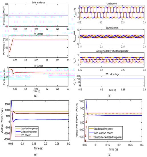 5.2. Under Solar Irradiance Change from 500 W/m2 to 1000 W/m2 and Rated Load Demand