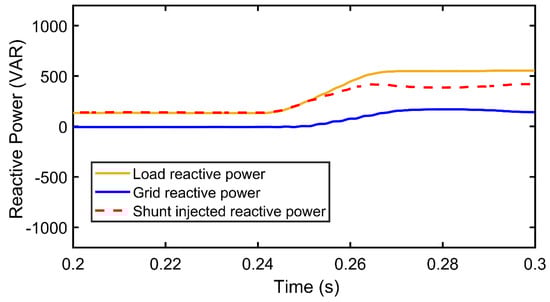 5.3. Under Load Change from Rated Value (1000 W, 200 VAR) to Higher Value (2400 W, 510 VAR)