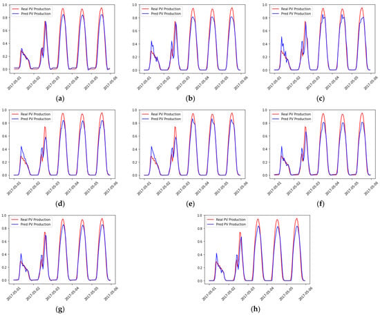 Finally, some graphs will be depicted to show the adjustment of the models. Given the sheer number of observations in the test, an illustrative example of the predictions is shown. It can be observed how the models adjust properly to the test data, although in most cases, the peak demand during the hours of maximum solar irradiance is underestimated. All of them follow a similar trend in both stable and unsteady days, being the latter harder to predict.