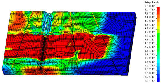 Figure 10 shows the 3D cloud map of effective stress at 2 ms after initiation. Since the gas drainage hole (control hole) crosses multiple rock and coal seams, the rock stratum and the interface reflection all influence the stresses on each coal seam. It cannot be analyzed along the whole length of the hole but needs to be explored separately for the two coal seams that the hole crosses.