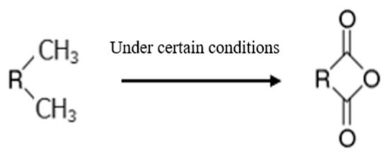 The PCL is a kind of prepolymer that needs to be cured at a high temperature under the joint action of the curing agent (CA). CAs can be divided into two types, reactive and catalytic. With the increase in the temperature, a reactive CA can react with the epoxy group in the PCL and become a part of the cured product [31]. The liquid system is further cross-linked from the initial linear structure to form a three-dimensional network structure through stepwise polymerization. In the polar covalent bond formed by the oxygen atom on the epoxy group and the carbon atom at the end of the main chain due to the large electronegativity of the oxygen atom and the strong attraction to the electron, the common electron in the C=O bond shifts to the oxygen atom, resulting in the oxygen atom forming a negatively charged enrichment region, and the carbon atom at the end of the main chain forming a positively charged enrichment region. The delocalization of positive and negative charges enables the epoxy group to react with nucleophiles or electrophiles to initiate ring-opening polymerization [32]. Therefore, reactive CAs usually have active hydrogen atoms such as aliphatic derivatives, organic acids, anhydrides, etc.