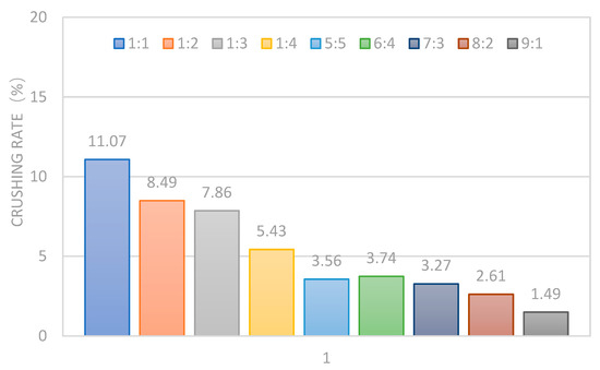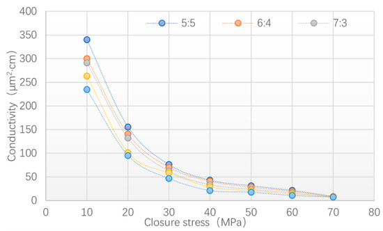 Through the modification experiment, it was found that the mass of the RD and PF had a great influence on the strength and hardness of the cured product. Therefore, the influence of different proportions of RD and PF on the mechanical properties and conductivity of the cured product was studied by combining the crushing rate experiment and flow conductivity test.