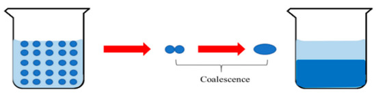 Coalescence process of dispersed droplets.