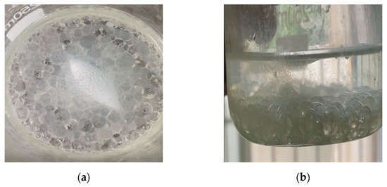According to the above ideas, the NPCL was synthesized and mixed with the PCL. Figure 19a,b show the PCL mixed with the NPCL. It can be observed that the PCL was suspended and dispersed in the NPCL in the form of droplets, with high dispersion and a clear two-phase interface. The dispersion system could maintain a stable state for a long time without coalescence between the droplets.