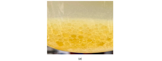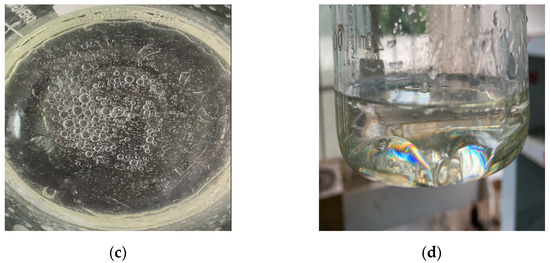 Figure 19c,d show the PCL mixed with water. It can be seen that the droplets formed by the PCL coalesced quickly in water and changed from dispersed-phase to continuous-phase, indicating the poor stability of the dispersed system.