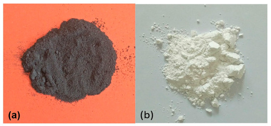 Sample photographs of: (a) Graphene nanoplatelets; (b) MgO NPs.