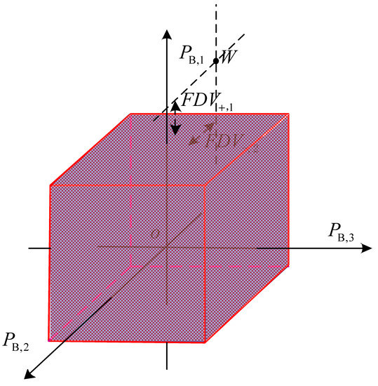 Let the total lines in the DN are ; the total nodes are ; the power injection vector of nodes is , nodal voltage vector is ; power flow vector of lines is . Based on Equation (7), the power vector of lines can be determined with the power flow equations. Then the line′s power flow is substituted into the boundary of the SR, and the vector of FDV is obtained from Equations (3) and (4), where .