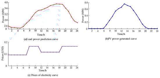 Power prediction for PV and loads and power purchasing price curves.