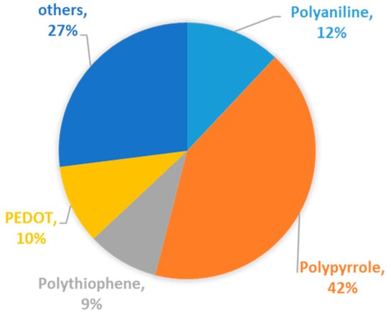 | Poly(3,4-ethylenedioxythiophene-poly(styrenesulfonate) (PEDOT:PSS) | Wet chemical method | Particle | 2–3 nm | 980 (160 cycles)/80 | [125] |