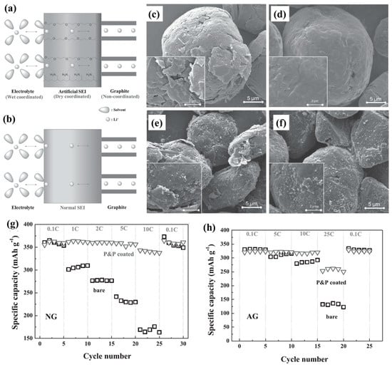 - Seo, J.; Hyun, S.; Moon, J.; Lee, J.Y.; Kim, C. High Performance of a Polydopamine-Coated Graphite Anode with a Stable SEI Layer. ACS Appl. Energy Mater. 2022, 5, 5610–5616. [Google Scholar] [CrossRef]