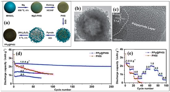 - Du, F.-H.; Li, B.; Fu, W.; Xiong, Y.-J.; Wang, K.-X.; Chen, J.-S. Surface binding of polypyrrole on porous Silicon hollow nanospheres for Li-ion battery anodes with high structure Stability. Adv. Mater. 2014, 26, 6145–6150. [Google Scholar] [CrossRef]