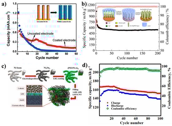 - Dou, P.; Cao, Z.; Zheng, J.; Wang, C.; Xu, X. Solid polymer electrolyte coating three-dimensional Sn/Ni bimetallic nanotube arrays for high performance lithium-ion battery anodes. J. Alloys Compd. 2016, 685, 690–698. [Google Scholar] [CrossRef]