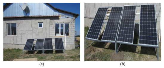 Figure 2. Photovoltaic panel (a) A building used to evaluate a temperature control system; (b) a photovoltaic panel used to measure solar radiation.