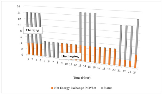 The energy required to charge the ESS during low load periods [22] comes from upstream networks (high/medium voltage stations) of conventional DN and other active DN sources. It consists of small pumping resources dispatched into fuel [49] and renewable sources for uncontrolled DG [50]. Similarly, the power exchange between the SG network and ESS is shown in Figure 5.