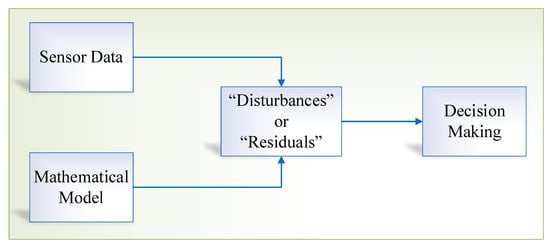 The FD of IMs via model-based techniques requires prior knowledge of the system. A prior assumption on the initial conditions is also a requirement when representing the system in operation. The signals which are generated by the mathematical models assist in the detection and identification of the faults incurred in IMs. In addition, model-based techniques mostly rely on the accurate dynamic model of the system and are equipped to detect unanticipated faults. This is because model-based approaches take advantage of the “disturbances” or the so-called “residuals” [74], which are the differences between the outputs of the actual physical system and its corresponding mathematical model (Figure 2).