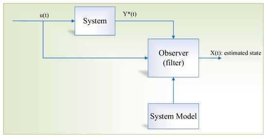 Under analytical methods, a finite number of variables exist which are known as the state variables. Based on their inaccessibility due to cost of the sensor or large requirement of the measurements or their lack of physical meaning, these variables are not measurable. In most circumstances, they are usually estimated over time as the system evolves, provided that appropriate initial conditions are specified. Figure 3 below shows the principle of state estimation where the measured system input and output signals are fed to the observer. While the mathematical model of the system is already known, this type of approach plays a major role in reconstructing the state of the system on the basis of measurements and the existing model. Namely, Kalman filters and Luenberger observers have been the most effective and common methods utilized under this domain [76]. For example, in terms of FD and CM, the rotor currents (of a squirrel-cage IM) or the flux can be used on the basis of the Park’s model of the IM to gage an idea on certain types of faults, because the control algorithms utilize the estimations derived from the aforesaid techniques. While these techniques (Kalman filter and Luenberger observer) are based on linear representation around the model, operating points and improvements have been made by extending the existing linear-based observers. In this regard, the extended versions of these techniques are the “extended Kalman filter (EKF)” [77] and the “extended Luenberger observer (ELO)” [78], respectively. In addition, a recursive and straightforward formulation based on the Kalman filter has been used to detect stator inter-turn faults in IMs, as per [79]. Not only that, the aforesaid estimation-based techniques have been very useful in terms of FD in power converters, as per studies in [80,81].