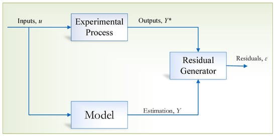 The techniques associated with residual generation for the diagnosis of IMs involve both model and actual generated signals. Deviations between the model and the actual (experimental) signal are known as the residuals, and Figure 4 illustrates the principle of residual generation techniques. While different residual generation techniques work in their own way, the prime objective is to extract meaningful residuals such that a particular type of fault occurrence is accurately detected. For healthy conditions, the deviation between the model and experimental output would converge around zero. It is often the case that techniques related to residual generation offer an accurate diagnosis for actuators and sensors [82]; however, internal faults are detected much better by using identification techniques (Section 4.1.4).