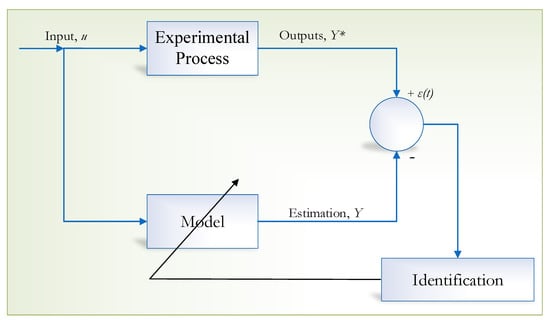 Identification techniques rely completely on the experimental data together with the analytical model to determine the dynamic model of the system, which is to be monitored or perform FD on. Utilizing the input–output measurements, the identification techniques aim to continuously update the model parameters and converge to classify various operating conditions. In terms of the FD and CM of IMs, the fundamental idea is to estimate the parameters that characterize healthy and faulty conditions. A formalization of this principle is explained in detail in [83]. The estimations for the model parameters are guaranteed by the error minimization algorithms which are between the output of the model and the real physical machine (IM). A generic principle of identification techniques is demonstrated in Figure 5 below.