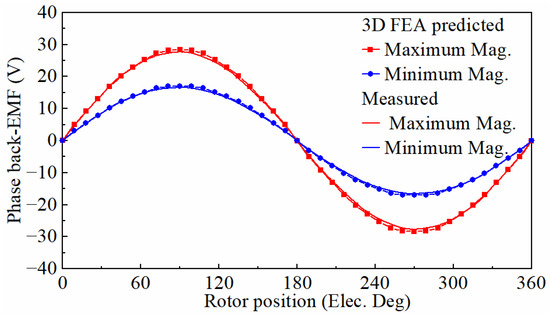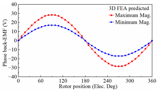 Open circuit phase back-EMFs under maximum and minimum magnetization states.