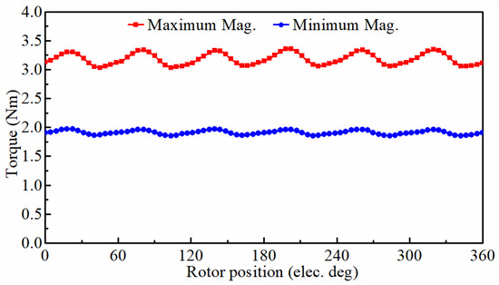 Torque waveforms in the maximum and minimum magnetization states.