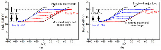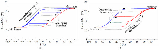 Resultant back-EMF hysteresis loop after magnetizing and demagnetizing from different initial magnetization states. (a) Magnetizing process; (b) demagnetizing process.